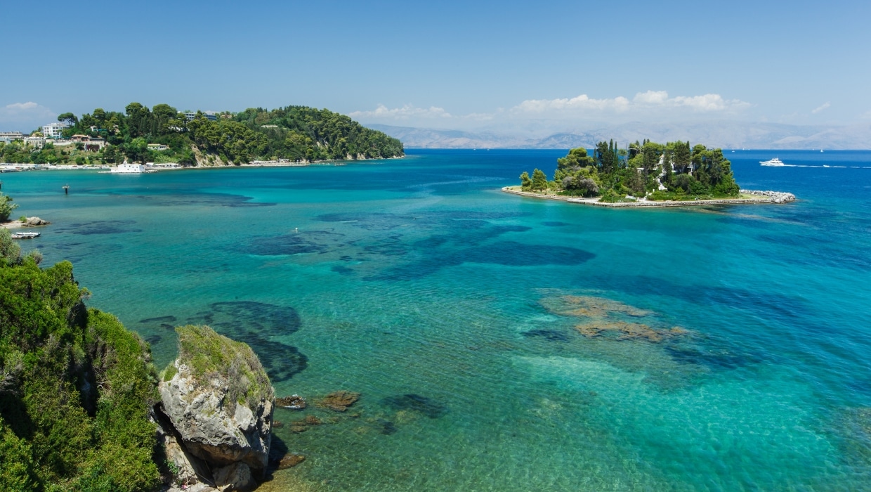 Navigați prin apele liniștite ale Mării Ionice, pe fundalul pitoresc al stâncilor accidentate, golfurilor ascunse și plajelor nisipoase din Corfu.