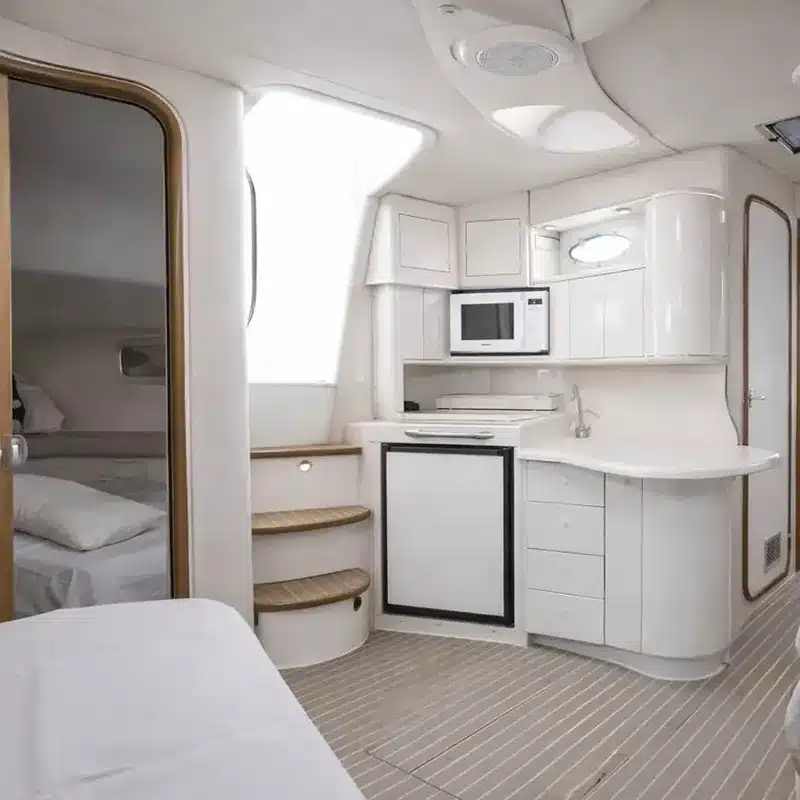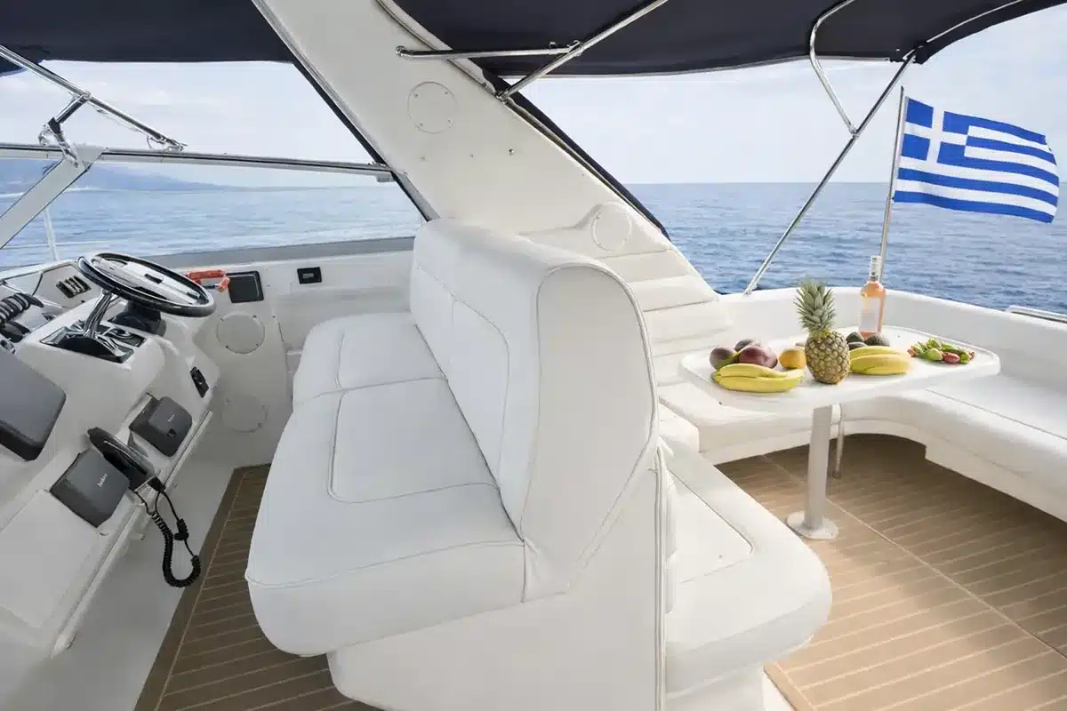 Onboard, guests can enjoy a spacious interior living area with an elegant cabin, kitchen, and air-conditioning, creating a refined environment ideal for longer cruises or relaxing breaks from the sun. The yacht is fully equipped with modern conveniences including a refrigerator, Wi-Fi, generator, and a private W.C. facility, ensuring comfort throughout your journey.